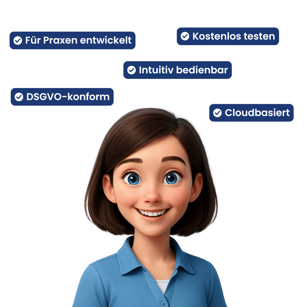 Die 100% DSGVO-konforme und intuitive KI-Assistenz für Arzt- und Zahnarztpraxen, mit der Sie pro Woche im Durchschnitt 5 bis 10 Stunden einsparen.